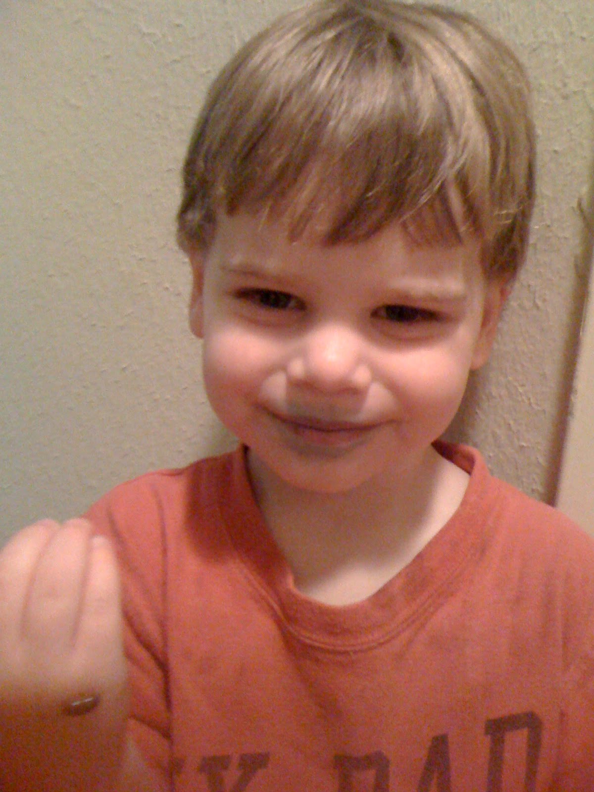 Back to normal! Yes, if you look closely, that is a corkscrew in Elijah's hand. I'm sure it was removed promptly after this picture was taken.